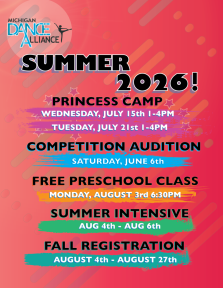 Registration for our 5-week Summer Session will begin April 1st. Registration for our 2026-2027 recreation season will begin online Tuesday, August 4th. These classes fill up very quickly so please plan ahead. We cap each class at 15 dancers with 1 instructor and 1 to 2 assistants.
